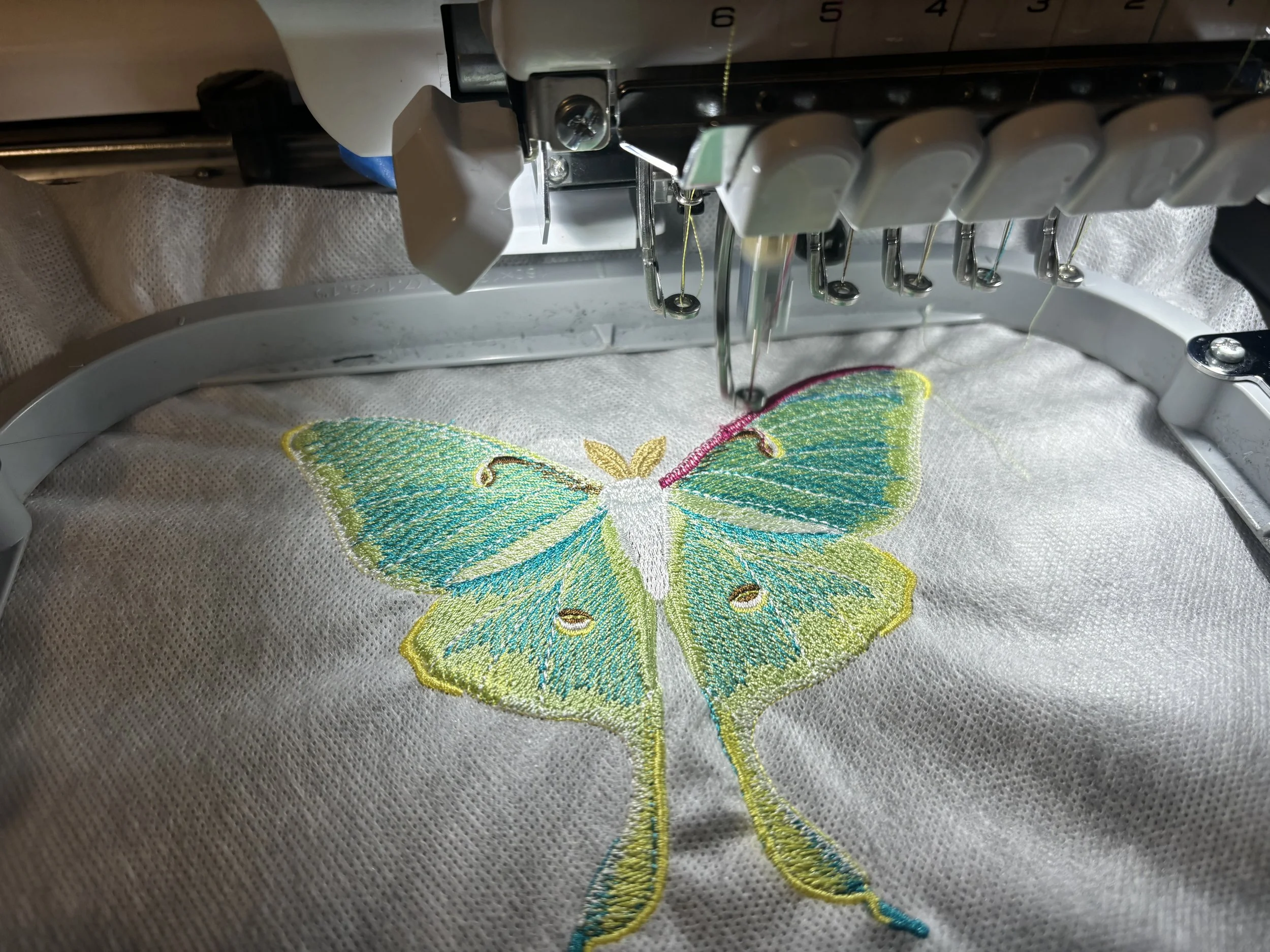 The Free Standing Lace has been a fun journey to begin. It entails winding my own color bobbins (with my brand new bobbin winder!) to match the color of thread for the back of my designs. I love how the jewelry and butterflies turn out, the amazing textures and fiber arts quality has been extremely satisfying to learn. As a perfectionist, I’m intricately cutting the tiny threads to create an effortless look — some of the designs even look like real butterflies! So… this is crazy but… I think I’ve made hundreds of butterflies and wings so far?! I’ve just had so much fun with this process, experimenting with different designs and colors. I love the idea of wearable art and now that I have unlocked this Free Standing Lace goal, there are so many infinite possibilities! Let me know if you have any ideas for what to embroider for Free Standing Lace. Some ideas I’ve had are for masquerade masks, clothing embellishments (like collars, sleeves, pockets), coasters, more butterflies and moths (obviously) and suncatchers/ornaments.